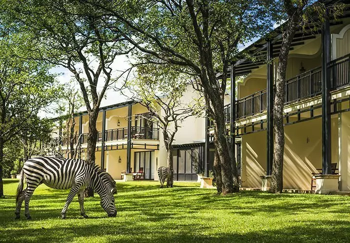 Siden hotellet ligger midt i en nasjonalpark, betyr det også at du bor her sammen med mange dyr, og det er ikke uvanlig å møte en sebra eller en impala på vei til frokost-buffeten.
