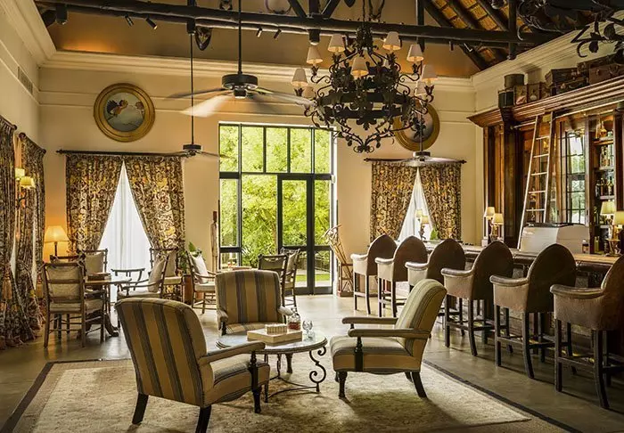 Det femstjerners hotellet bygd i en eksklusiv stil inspirert av kolonitidens Afrika med mørke møbler og dyreskinn, og er absolutt verdt hver eneste stjerne.