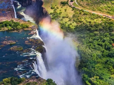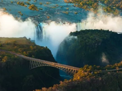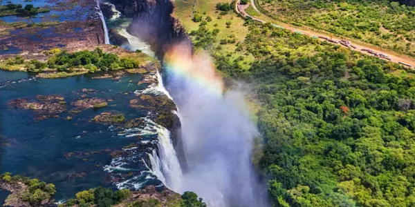 Victoria Falls er et av verdens største vannfall, og det ligger faktisk på grensen mellom Zambia og Zimbabwe.
