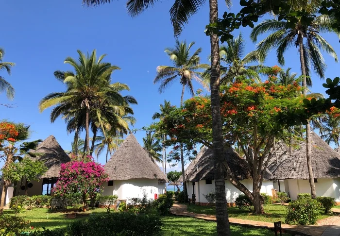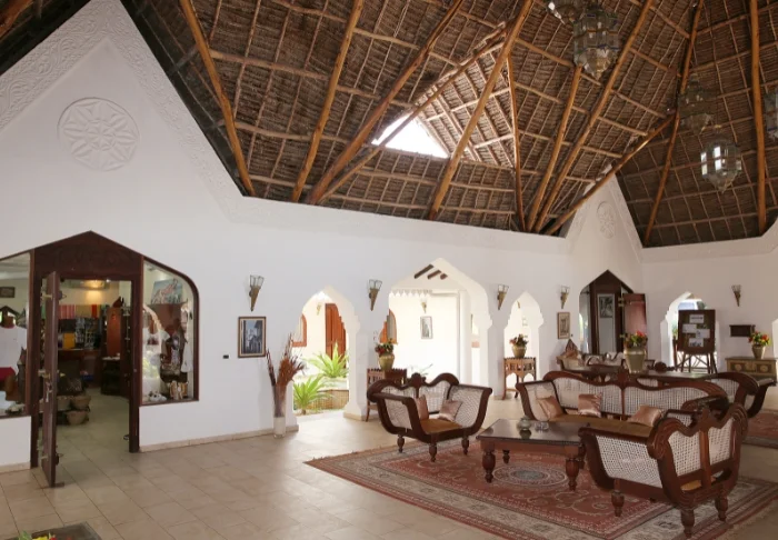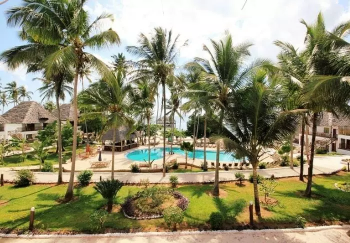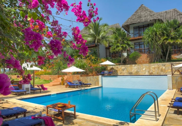 Det familieeide hotellet er innredet i klassisk Zanzibar-stil med en moderne vri, har egen strand og ligger nærmest i en stor botanisk hage med mer enn 3000 eksotiske planter, trær og blomster.