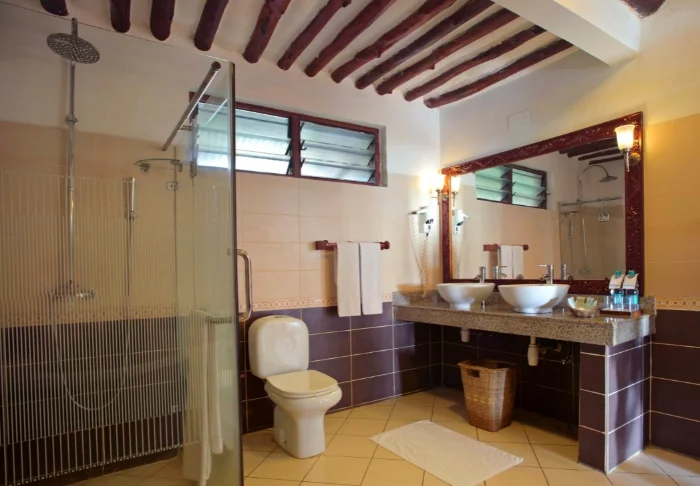 Rommene på resorten er innredet i østafrikansk stil med tremøbler og lyse farger på veggene. Alle rom har myggnett, aircondition, safe, minibar og te- og kaffefasiliteter. I tillegg har de egen veranda.