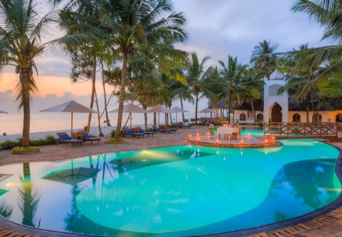 Nyt den avslappende og intime stemningen på dette stedet, som spesielt henvender seg til par og mindre grupper. Hotellets nedre aldersgrense er 16 år. Stranden er kritthvit, havet lunt og klart, og den lille byen Nungwi har både små kafeer, massevis av handlemuligheter og et godt tilbud av aktiviteter.