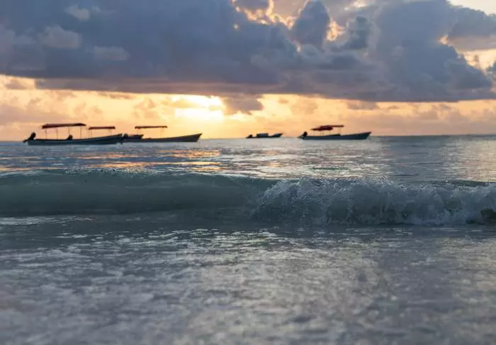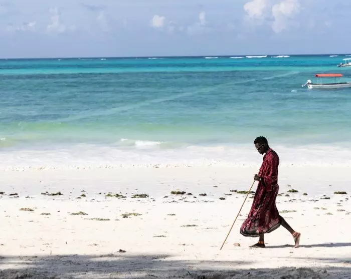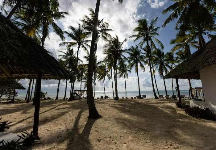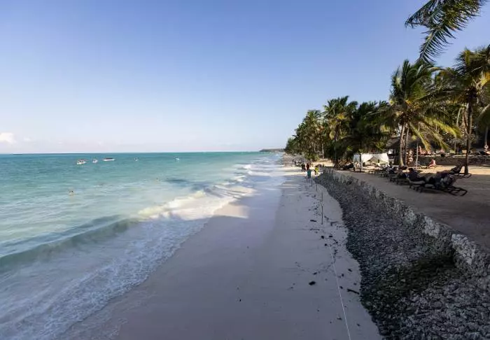 Som et av bare få steder her på østkysten har Karafuu bygget en gangsti fra stranden og over korallene, så selv ved lavvann kan du komme deg ut til vann som er dypt nok til å bade i.